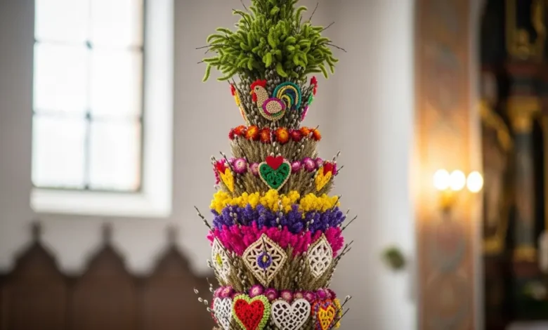 Imagine a burst of impossible color against the pale, hesitant sky of a Polish spring. Towers of intricate, rainbow-hued flowers, some reaching higher than the houses, are carefully raised towards the heavens. This is not a dream. This is Palm Sunday in the Kurpie region of Poland, and you are witnessing one of Europe’s most spectacular and beautiful folk traditions: the creation and celebration of the Kurpie Easter Palm (Palma Kurpiowska).